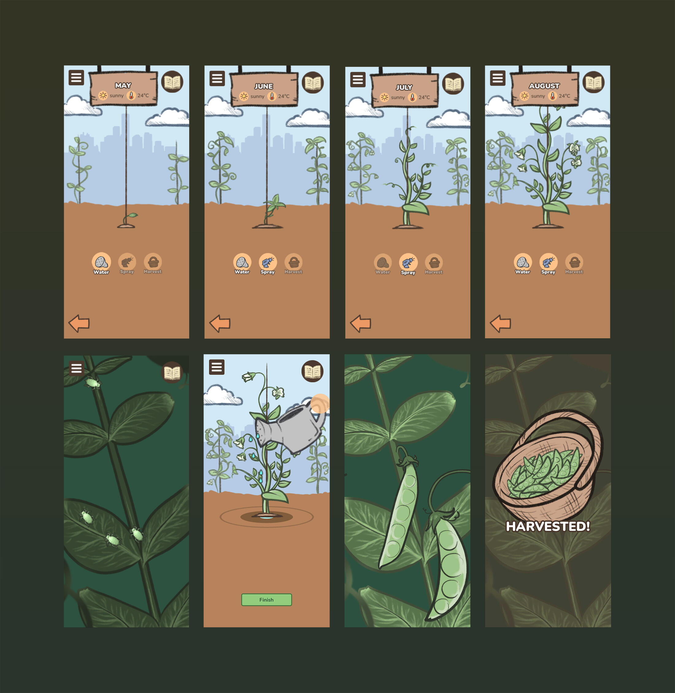Our solution is to create a mobile game targets novice gardeners in the process of growing and harvesting vegetables, gaining experience in a fun and relaxing environment.